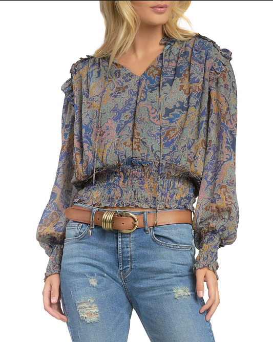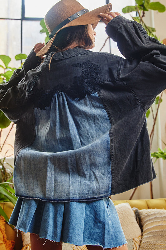 Avonne's Lace Trimmed Color Block Denim Pullover