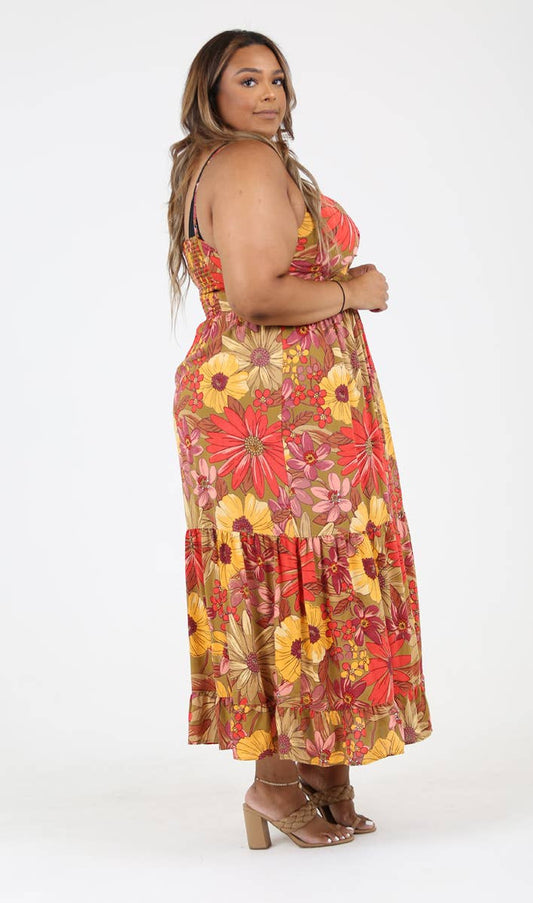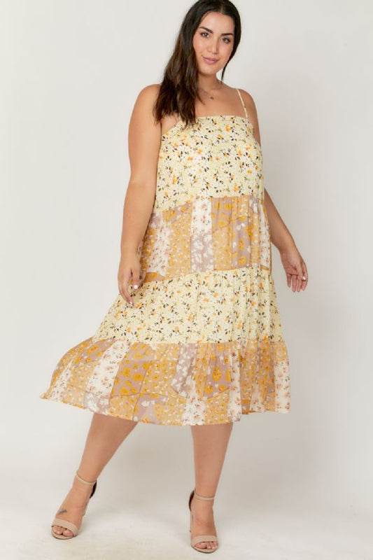 PLUS SOLID SMOCKED MINI DRESS WITH POCKETS